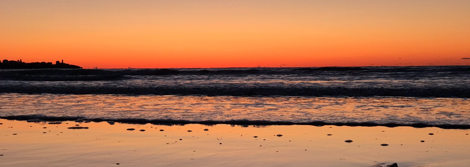 The untouched, cool, wet packed sands of a new morning beach as the tide continues to slip out to sea.